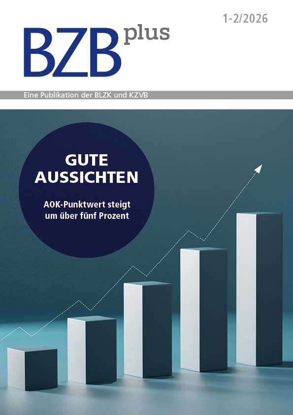 Das Bayerische Zahnärzteblatt (BZB) wird in einer Herausgebergemeinschaft gemeinsam von der Bayerischen Landeszahnärztekammer (BLZK) und der Kassenzahnärztlichen Vereinigung Bayerns (KZVB) publiziert. Das BZB ist das Amtliche Mitteilungsblatt der Bayerischen Landeszahnärztekammer sowie der Kassenzahnärztlichen Vereinigung Bayerns. Auf dieser Website finden Sie ausgewählte Beiträge aus der aktuellen Ausgabe sowie auch die vollständigen E-Paper-Versionen von BZB und BZBplus.